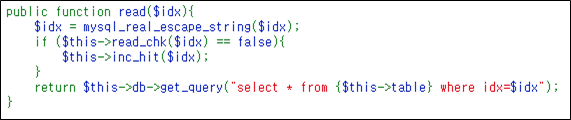 소스 중 Board class의 read함수를 보면 idx변수에 대해 해당하는 게시글을 읽는다.