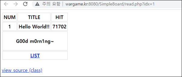 url = ('http://wargame.kr:8080/SimpleBoard/read.php?idx='+query).replace(" ", "%20")