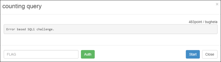 ErrorBased SQLi로 DB명을 출력하는 테스트를 해보면 counting_query라는 DB명을 알아오는 것을 확인할 수 있다.