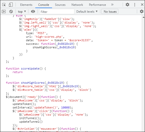 javascript game이라 하니 javascript를 보면 난독화가 되어 있다.