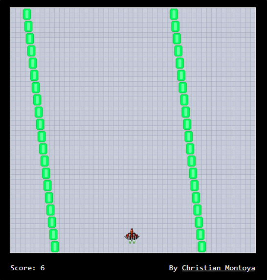 비행기 모양의 이미지가 초록색 네모 모양의 이미지(이하 벽)에 닿지 않게 쭉 진행하는 게임이다.