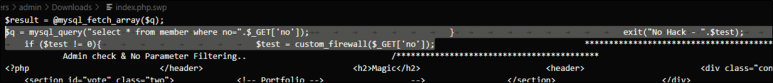 .index.php.swp을 받아서 열어보면 no에 GET method로 넘겨받아