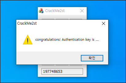 글 작성일 기준 197748653이기 때문에 이 값을 입력하면 congratulations ~이라는 메세지가 팝업된다.