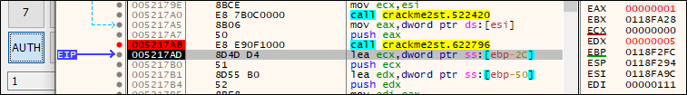 프로그램의 흐름 및 힌트 문자열을 확인하기 위해 아무거나 입력 후 AUTH 버튼을 누른다.