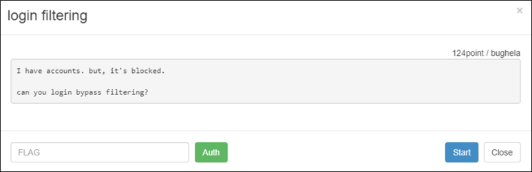 따라서 guest 혹은 blueh4g중에 대문자 하나라도 섞여있으면 우회할 수 있으면 FLAG를 획득할 수 있다.