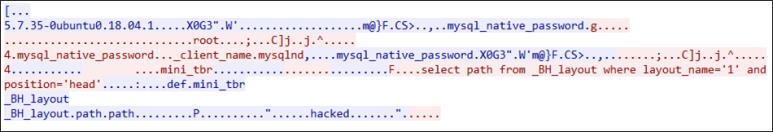 GET mthod로 _BHVAR['db']['host'], _BHVAR['db']['user'], _BHVAR['db']['pass'], _BHVAR['db']['name']을 내가 원하는 DB 값으로 바꾸고, 해당 DB에 _BH_layout테이블에 path값을 hacked로 넣어놓으면 이 값을 읽어 갈 것이다.