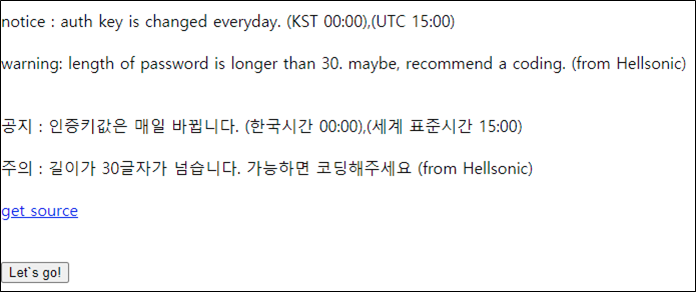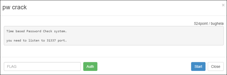소스를 보면 Let's go!버튼을 누르면 내가 웹에 접속한 IP:31337 TCP로 password : 라는 글자를 보내고