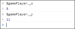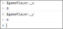 그 중 gamePlayer 변수의 _x, _y값을 보면 8,6이라는 점을 알 수 있다.