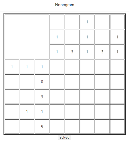 우측 하단을 클릭하면 검은색으로 바뀐다. 숫자만큼 검은색을 채우면 다음과 같은 도형이 만들어진다.