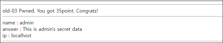 answer값에 ' or 1=1 #을 넘기면 ip가 localhost인것이 뽑히는 지 admin으로 인식하여 점수를 획득할 수 있다.