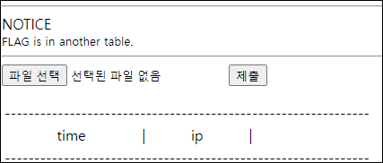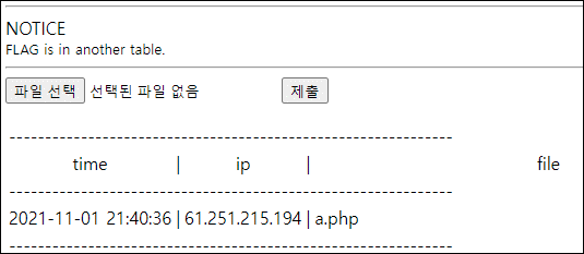파일 하나 올려보면 시간과 ip, 파일 명이 올라간다. 아마도 insert이후 ip기준 select인 듯 하다.