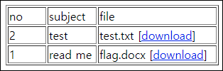 따라서 flag.docx를base64인코딩하여 ?down=ZmxhZy5kb2N4을 넘겨주면 flag.docx를 다운받을 수 있다.