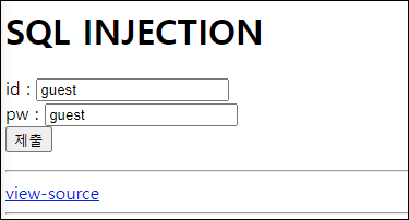 view-source를 보면 id와 pw에 작은 따옴표, 큰 따옴표, 백 슬래쉬, 널 바이트가 포함되어 있다면