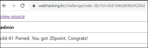 if($result['id'] == "admin") solve(61);