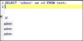 SELECT 'admin' as id를 넣으면 id컬럼명에 데이터는 admin이 들어간다.