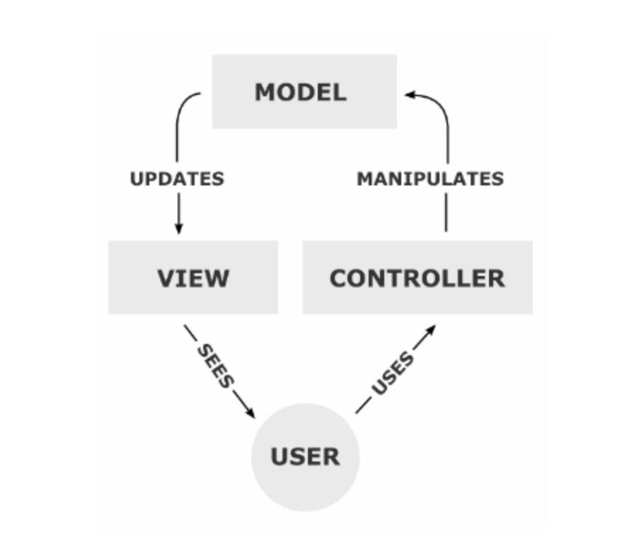 사용자가 Controller를 사용하면 Controller는 Model에게서 데이터를 받아오고, 그 데이터를 View에서 시각적인 부분을 제어하여 사용자에게 전달한다.