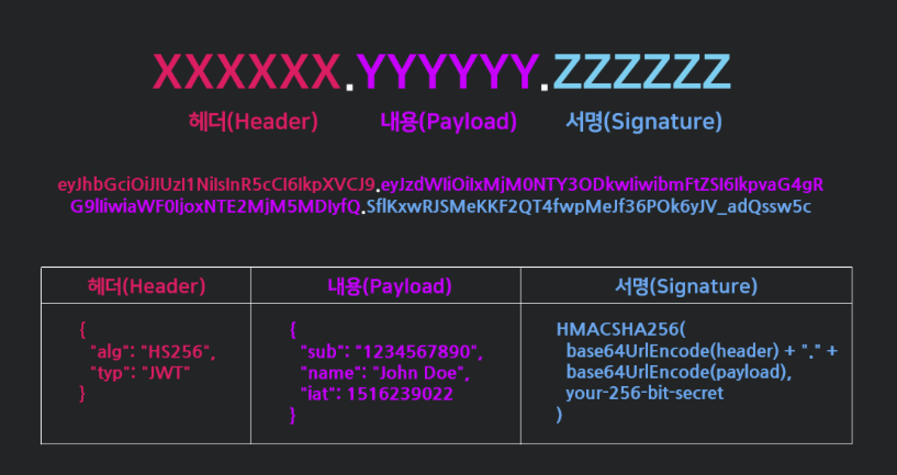 JWT는 .를 구분자로 나누어지는 세 가지 문자열의 조합이다.