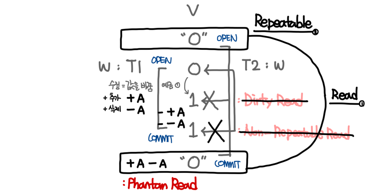 : 한 트랜잭션 내 반복해서 read 할 때, 타 트랜잭션의 시작과 끝의 다른 값을 read