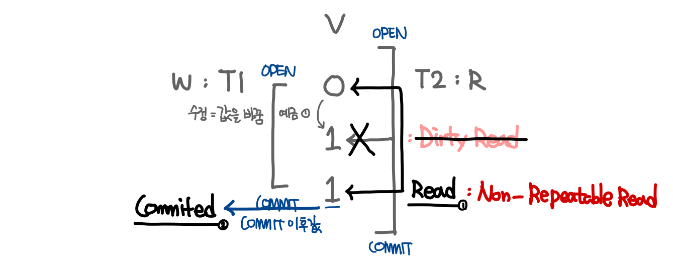 - 다른 트랜잭션에 commit 된 변경 사항만 read 가능