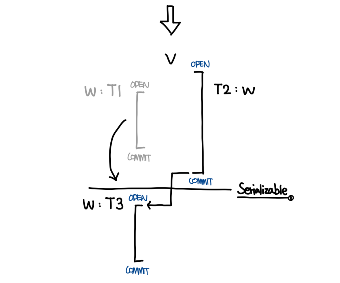 - 현재 트랜잭션과 다른 타 트랜잭션 버전이 무엇을 하던 어차피 버전 기반으로 무시하기 때문