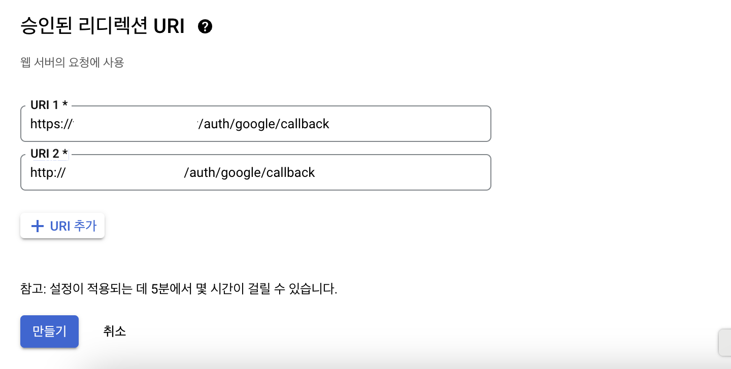 승인된 리디렉션 URI에 Front-end의 리디렉션 URI를 입력한다. (백엔드와는 무관하다!)