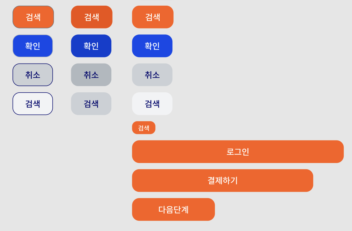 여러 페이지 및 컴포넌트에서 공통으로 사용할 수 있는 버튼을 개발하였다. 디자인에 따라 크기별 스타일별로 분류하여 작업을 진행했다. 모바일에서 사용하는 가장 작은 버튼부터 width가 100%인 버튼까지 총 5개의 크기로 분류하였으며, 4가지 스타일을 지정하여 버튼을 사용하는 곳에서 props를 통해 원하는 속성을 결정할 수 있게 하였다.