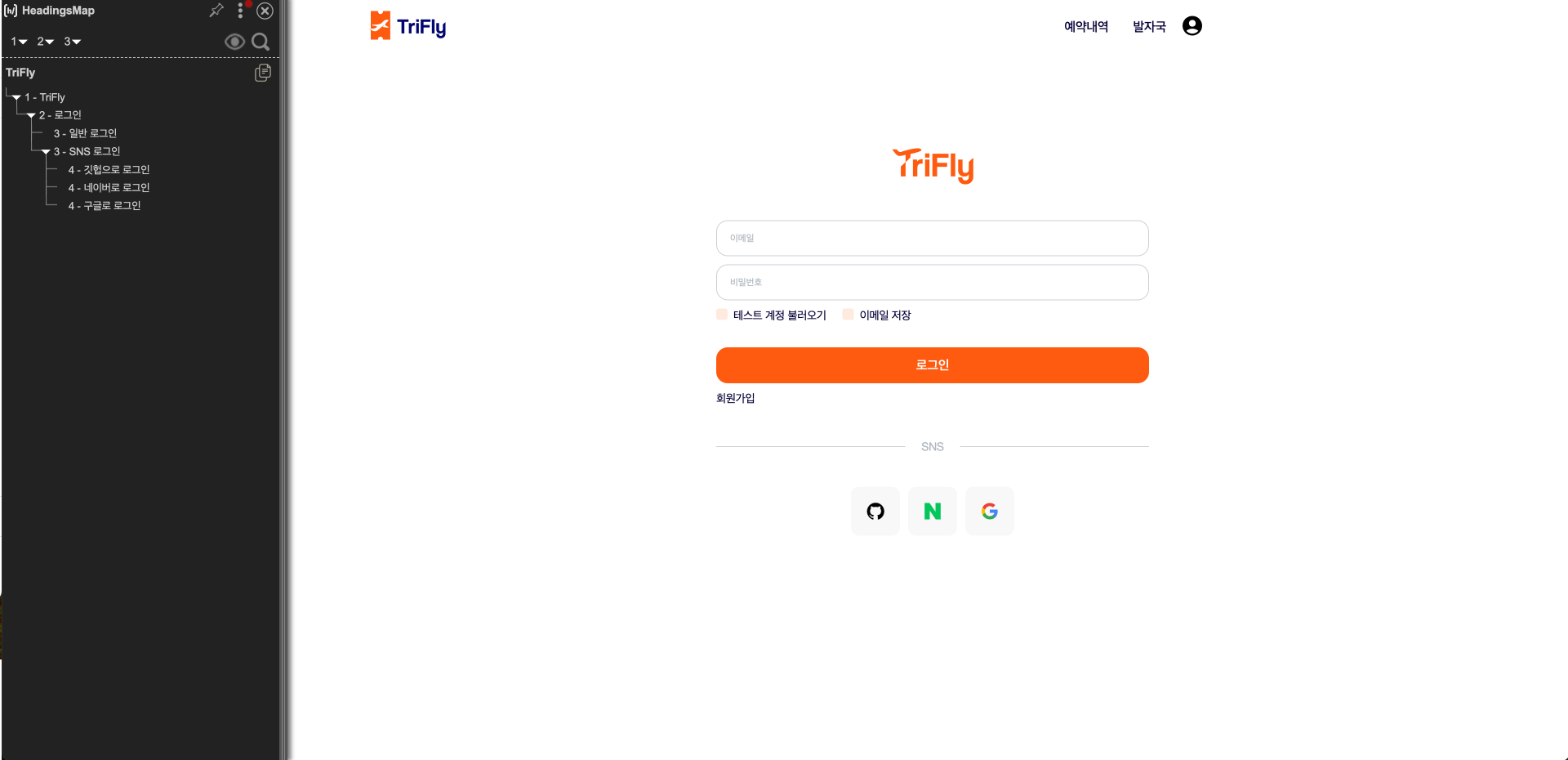 접근성 고려를 위해 우리는 헤더에 있는 페이지 로고에 h1 태그를 사용하고 이를 화면에서는 보이지 않게 숨기기로 했고, 내부 컨텐츠는 h2부터 사용하여 각각 어떤 부분인지 설명하기로 했다. Chrome에서 확인하기 위해서는 HeadingsMap이라는 확장 프로그램을 설치하면 된다.