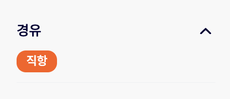 직항/경유 필터는 공통컴포넌트인 Badge의 스타일을 사용하되 토글 버튼의 기능을 가지도록 설계했다. 당연히 사용자가 경유편을 포함하여 검색했을 경우만 나타나게 하였다. 검색창에서 "직항만 검색"을 체크했을 경우 이 필터는 사용자에게 보이지 않는다.