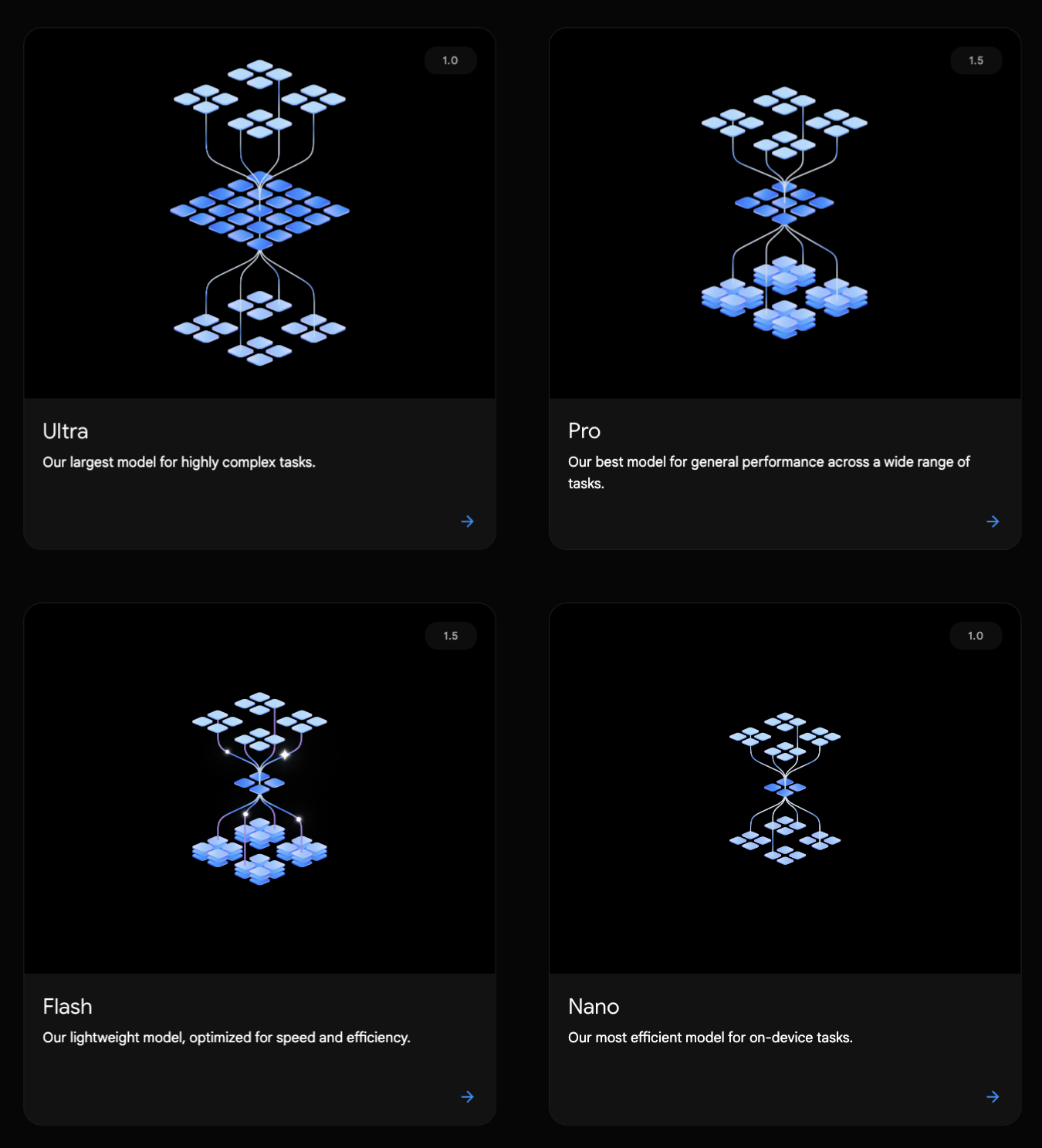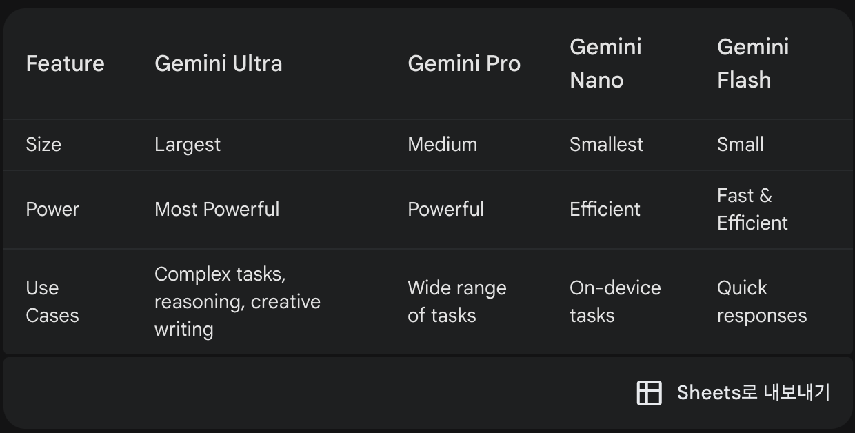 Gemini는 크게 4가지 모델로 분류됩니다.
