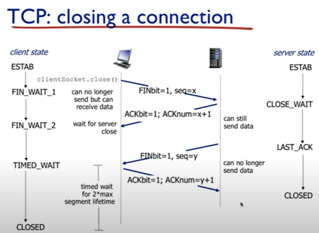 - app에서 데이터를 받음 -> 세그먼트 생성(시퀀스 넘버 : 처음 정한 번호) -> 네트워크 레이어로 전송, 넥스트 시퀀스 넘버를 기존 넘버에 여기서 보낸 데이터의 바이트만큼 더해야함(한 개의 페킷을 보내는게 아닌 바이트단위로 보내기 떄문)