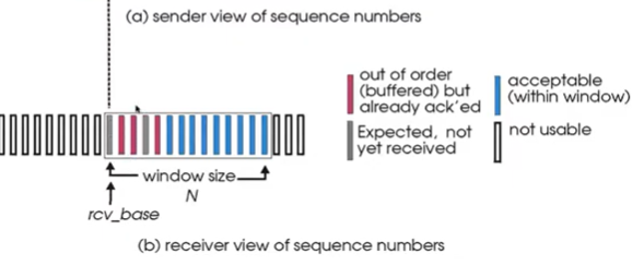 go-back-n과 다르게 ack를 뒤에거를 먼저 받을 수 있음