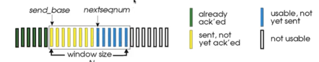 - sender는 보내고 ack를 못받은 가장 오래된 패킷의 타이머를 실행 : 타임아웃되면 그 이후의 모든 노란색 패킷을 보냄