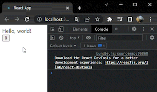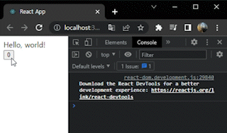 이번에도 mount는 최초 1회만, number의 변경은 버튼을 눌러 값이 update될 때마다 console로 알려준다.