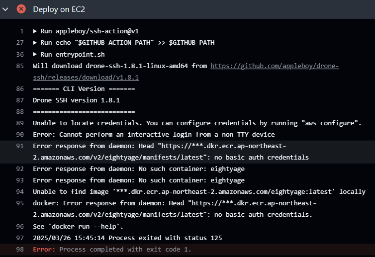 ๋ น์ด๋ฅผ Deploy on EC2 ๋จ๊ณ์ ์ถ๊ฐํ์ docker pull์ด ์ ์์ ์ผ๋ก ์๋ํ๋ค.