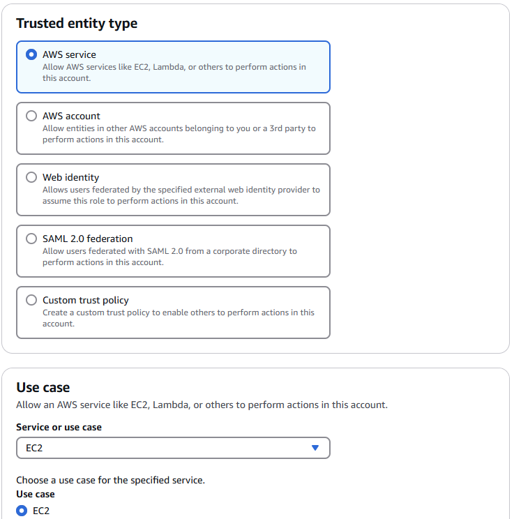 ๋ค์๊ณผ ๊ฐ์ด ์ค์ ํด์ผ EC2๊ฐ ECR์์ pull/push ํฌํจ ํ ๊ถํ์ ๊ฐ์ง๋ค.