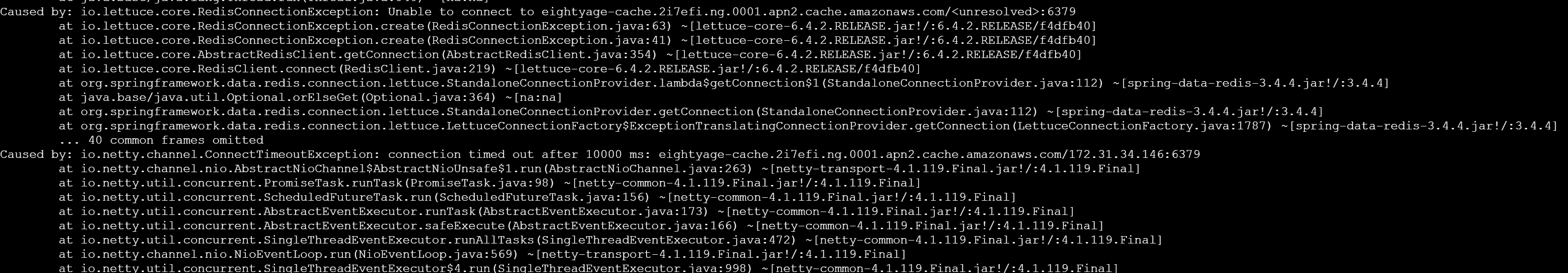 Caused by: io. lettuce. core. RedisConnectionException: Unable to connect to