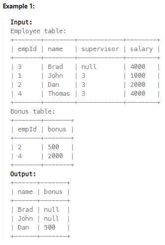 LEFT JOIN bonus b ON e.empId = b.empId