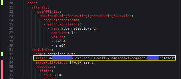 ECR에 push한 이미지를 불러오는 것과, Docker Hub 상의 이미지를 불러오는 구문의 차이는 다음과 같다.