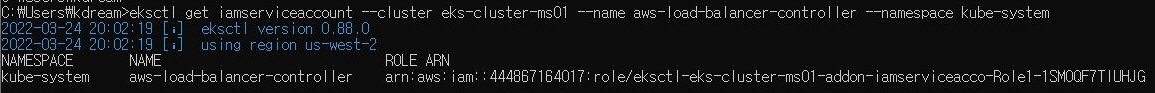 eksctl get iamserviceaccount --cluster YOUR_CLUSTER_NAME --name aws-load-balancer-controller --namespace kube-system