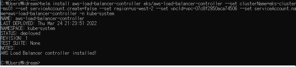 helm install aws-load-balancer-controller eks/aws-load-balancer-controller \