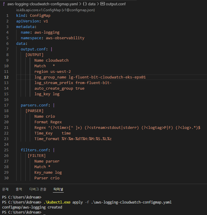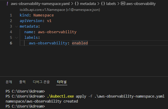 1) aws-observability라는 전용 네임스페이스 생성