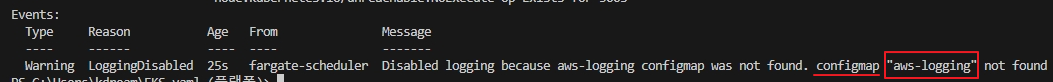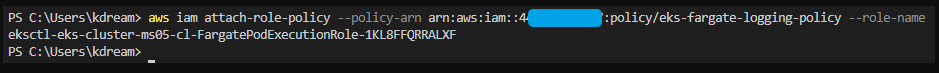 aws iam attach-role-policy --policy-arn arn:aws:iam::4xxxxxxxxxxx:policy/eks-fargate-logging-policy --role-name