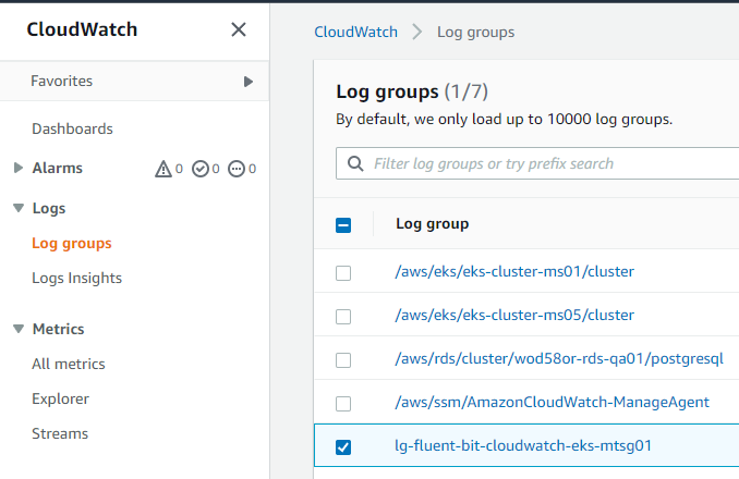2) Fluent Bit 프로세스 로그를 CloudWatch로 전송