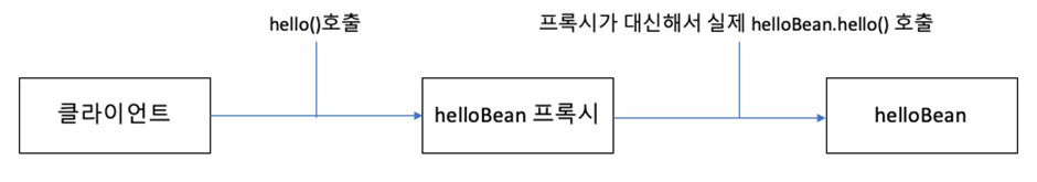 - 프록시 객체는 원래 빈을 상속받아서 만들어지기 때문에 클라이언트 입장에서는 실제 빈을 사용하는 것과 똑같은 방법으로 사용하면 된다.