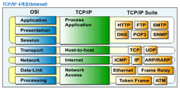 (1) Network Access 계층 : OSI 물리계층과 데이터 링크 계층에 해당 ,하드웨어적인 요소와 관련된 모든 것을 지원하는 계층