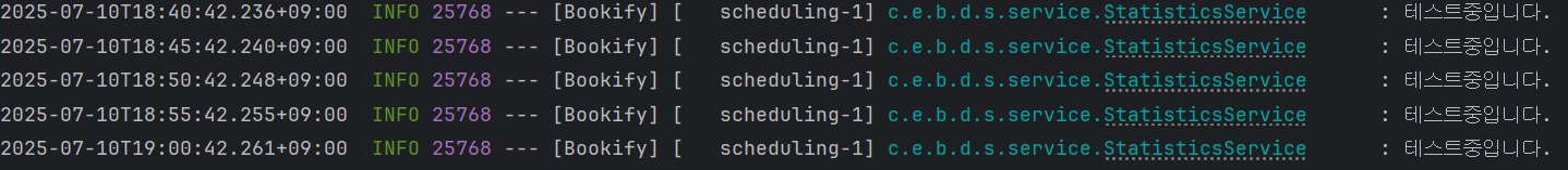 @Scheduled(cron = "30 5 * * * *") // "*초 *분 *시 *일 *월 *요일" 매시간5분30초마다