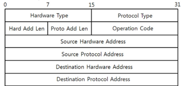Protocol Type : 매핑 대상인 프로토콜 주소의 유형, IPv4의 경우 0x0800