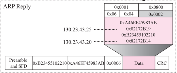 Destination address : A가 보낸 Request의 ARP packet(Data)에 적힌 A의 MAC 주소를 삽입 => A에게만 전달, unicast