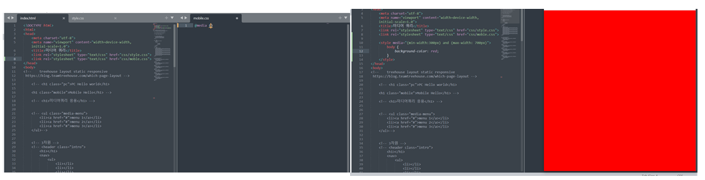 지금 까지 해왔던 방식으로 styl.css 파일에서 pc버전과 mobile버전 모두를 작성하는 방법